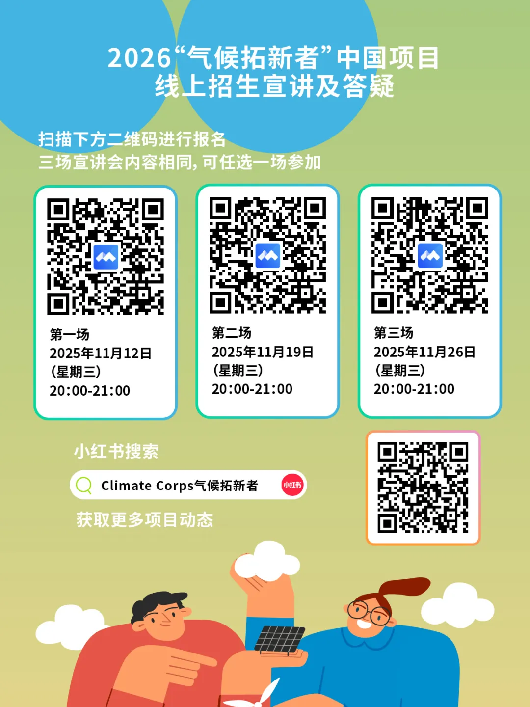 2026年“气候拓新者”中国项目将继续面向各大高校的在读硕士和博士研究生,招募约50名具备分析研究和项目管理能力、且期待在可持续发展领域有所作为的同学,共同探索企业减碳与绿色转型的创新路径。