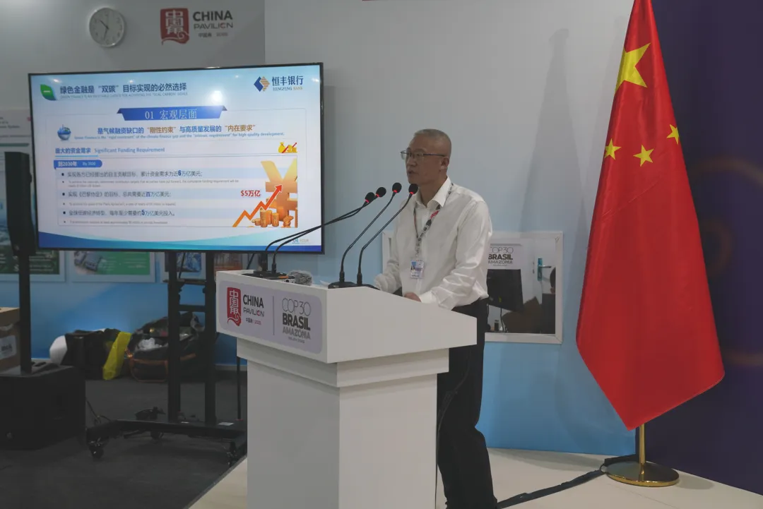 会议还展示了中国碳市场的最新成果,该环节由碳排放权登记结算(武汉)有限责任公司董事长尹俊进行主持。生态环境部环境规划院碳达峰碳中和研究中心主任雷宇与恒丰银行股份有限公司董事长辛树人分别作了分享。